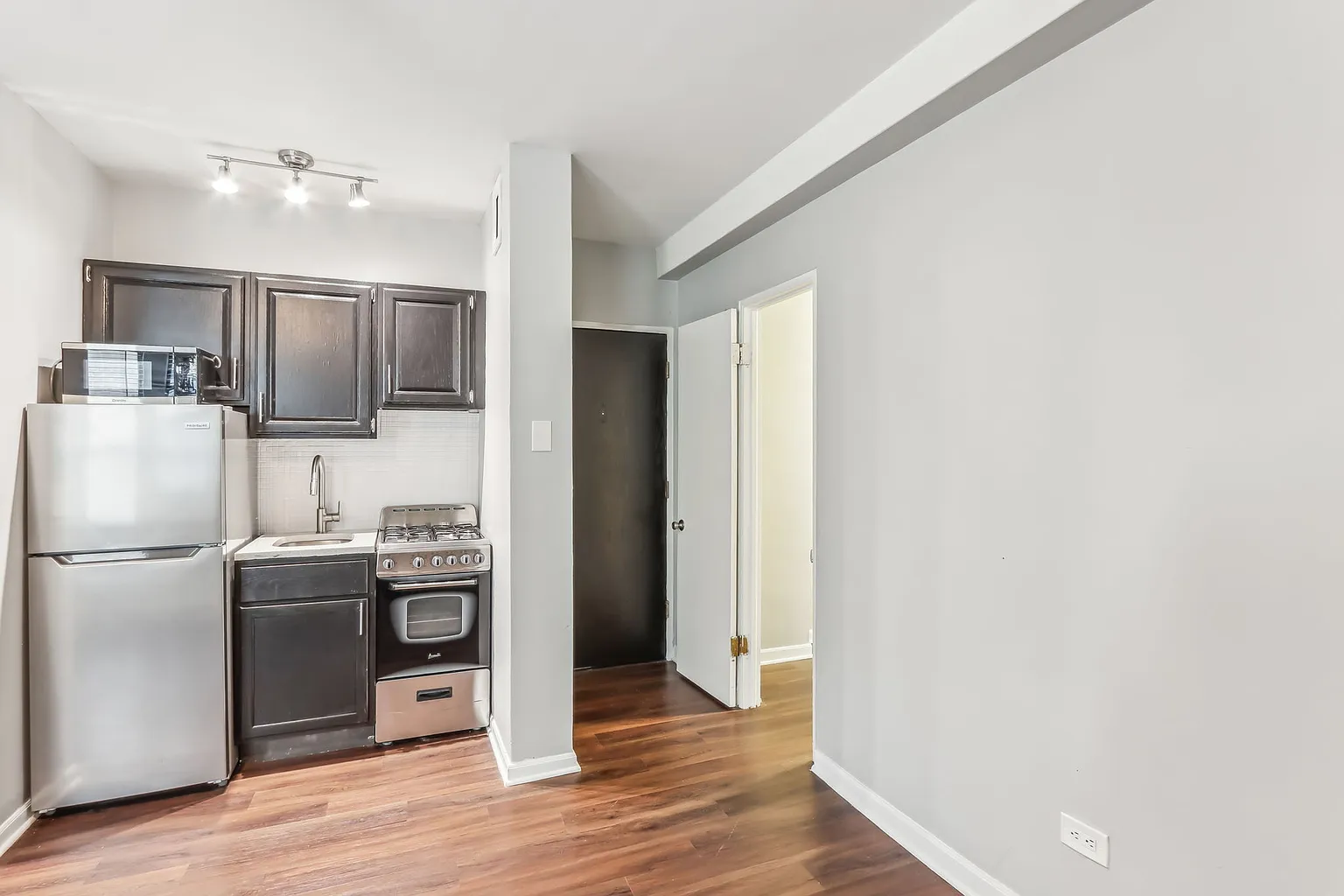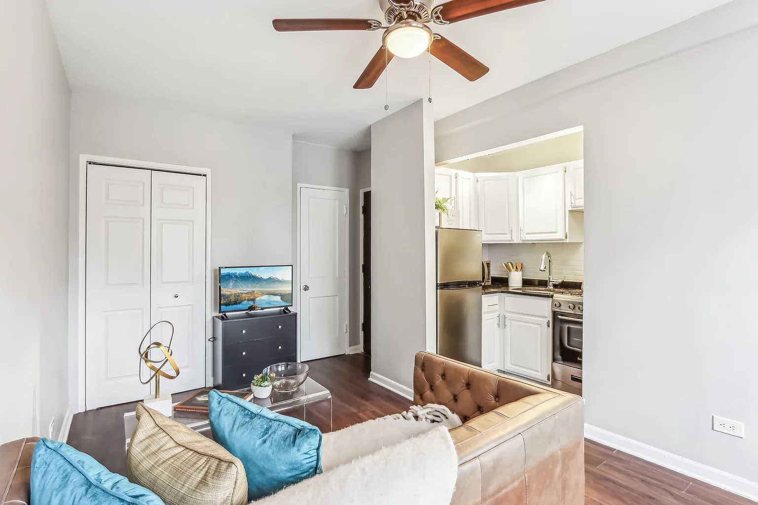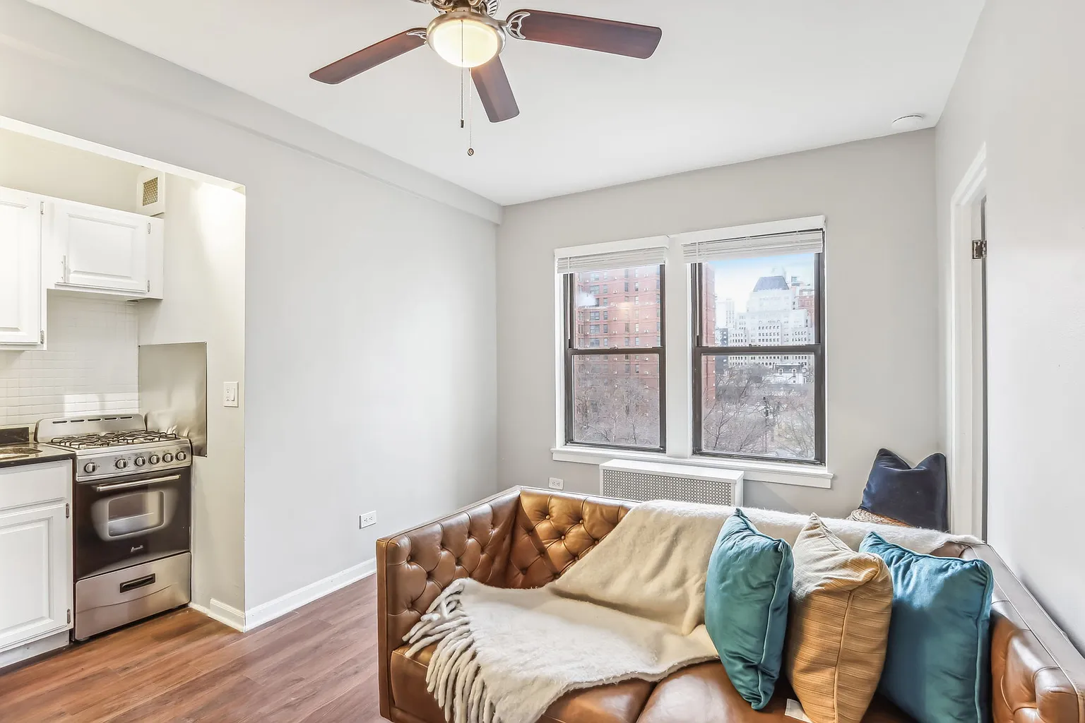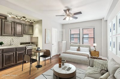 Experience elevated city living in this beautifully updated studio at The Oliver at Gold Coast, ideally located in Chicago’s desirable Near North / Gold Coast neighborhood. This thoughtfully designed home offers modern finishes, smart features, and stunning city and lake views. The studio features a remodeled kitchen and bathroom with sleek stainless steel appliances, including a refrigerator, gas range, microwave, and dishwasher. Wood cabinetry, tile backsplash, and energy-efficient appliances give the kitchen a clean, contemporary feel. Enjoy comfort and functionality with luxury vinyl plank flooring, built-in shelving, multiple closets, and ceiling fans. Large windows fill the space with natural light while showcasing amazing city and lake views. The bathroom includes a shower and tub combination for added convenience. Additional highlights include radiant heat, window A/C units provided by the building, window treatments, and keyless smart lock entry via phone app. Residents also benefit from 1-gig upload and download high-speed fiber optic internet, perfect for remote work or streaming. Located steps from dining, shopping, nightlife, public transportation, and the lakefront—this studio offers the perfect blend of comfort, style, and location. ***Rentlife LLC***