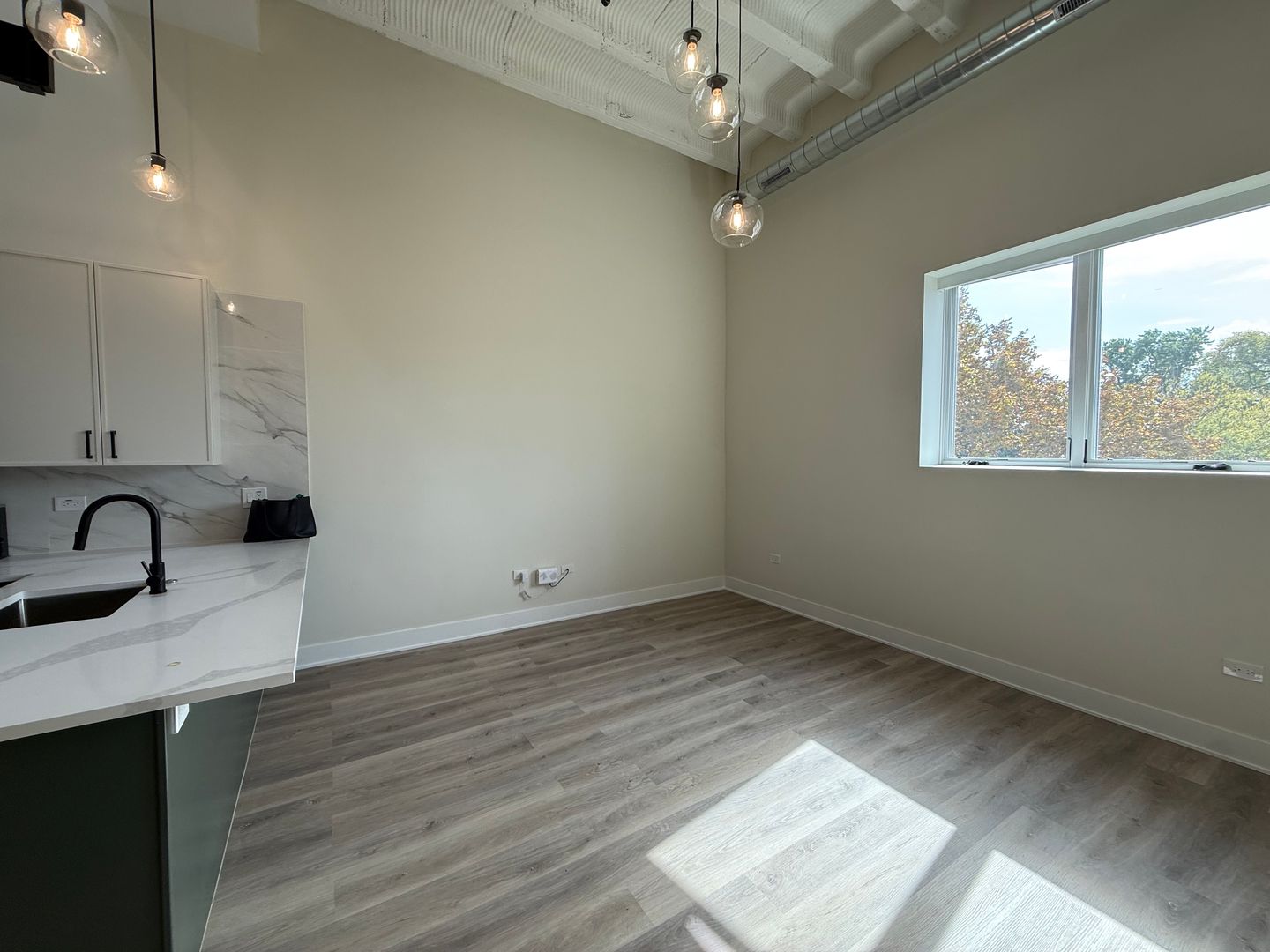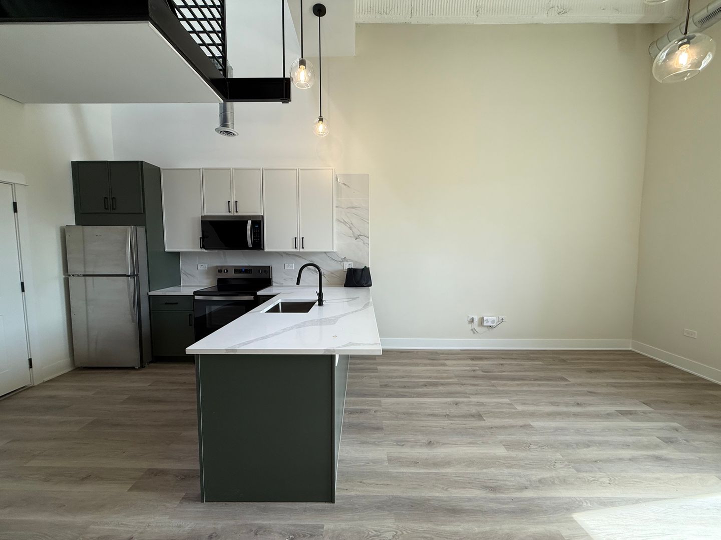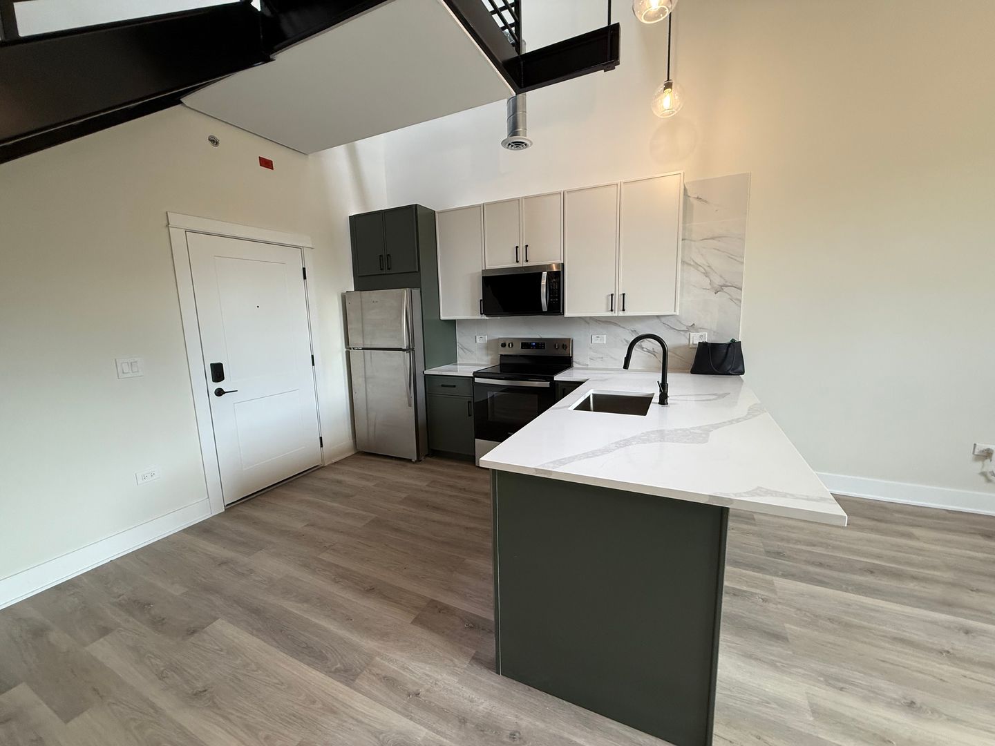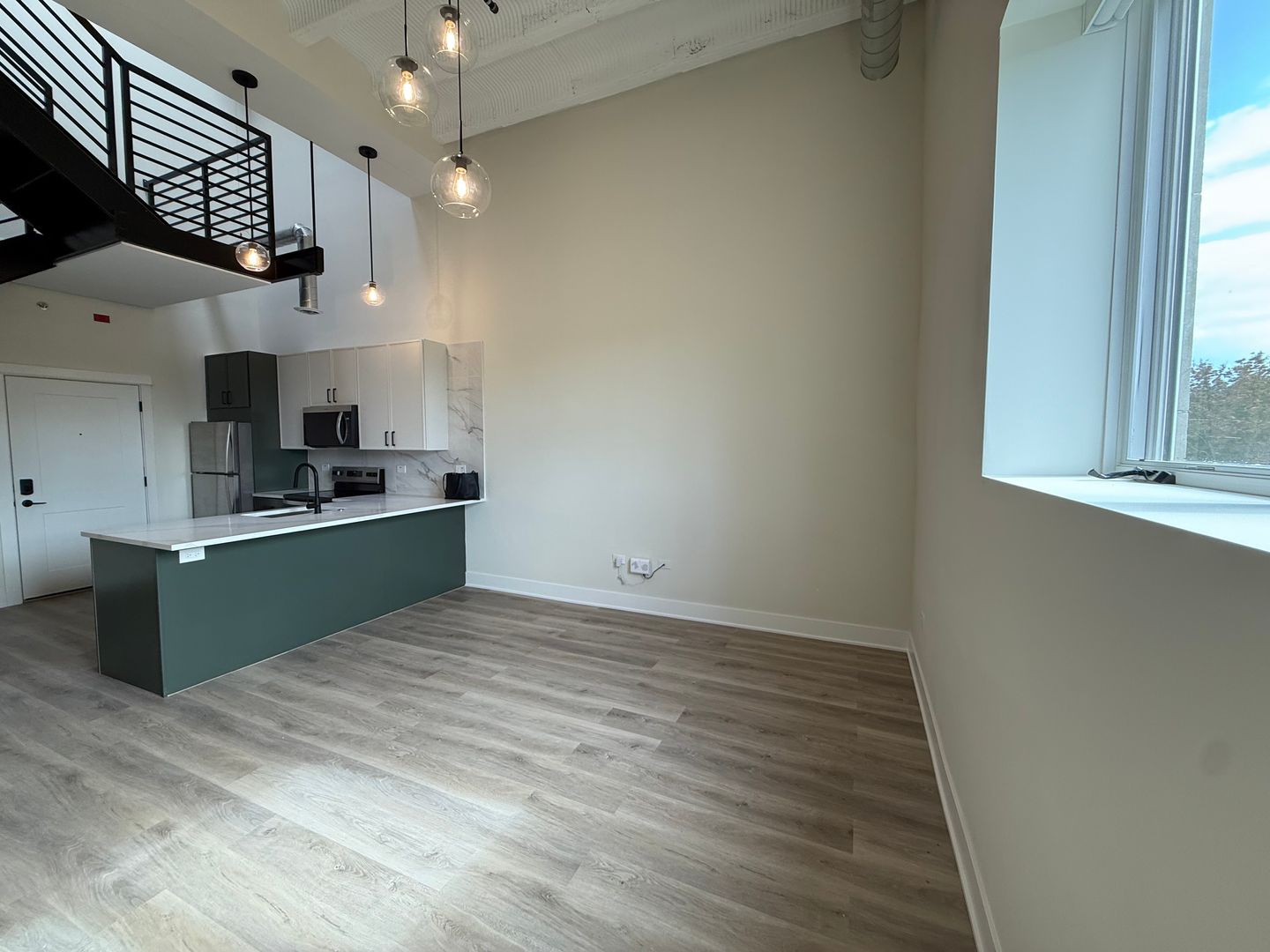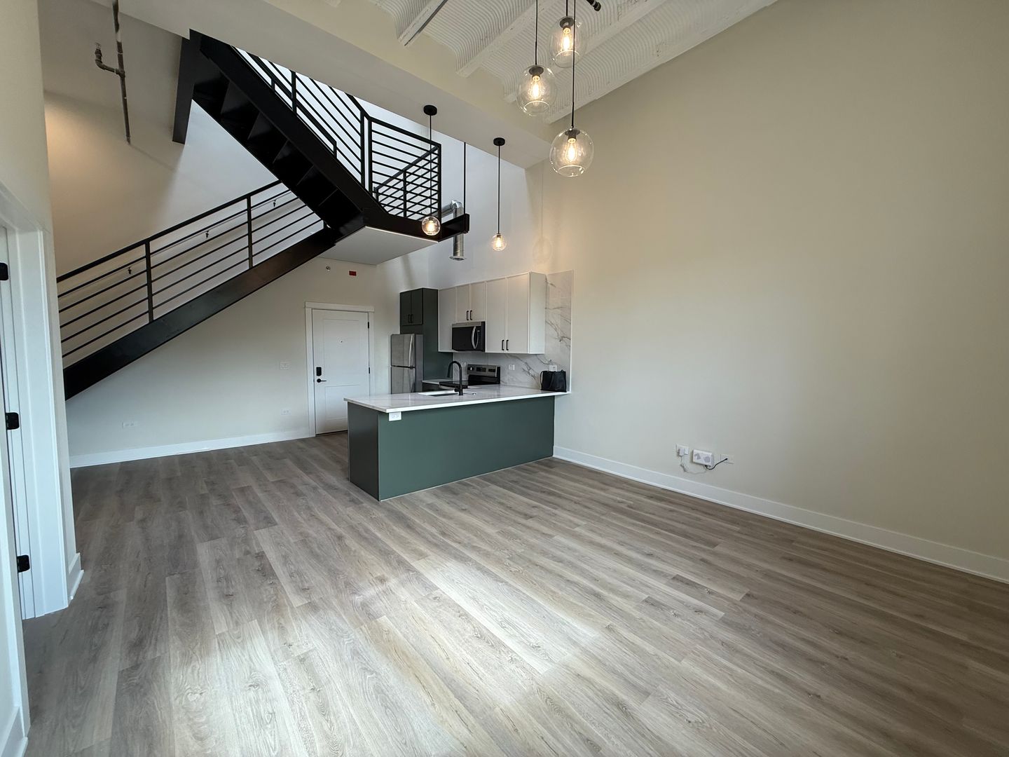 Unit Features: • High Ceilings • Modern Finishes • Slim-Shaker Kitchen Cabinets • Kitchen Island with Quartz Countertops • Stainless Steel Appliances • Loft-Style Living Space • In-Unit Front-Loading Electric Washer/Dryer • Luxury Vinyl Plank Flooring • Central Heat & Air • Large Closets • Frameless Glass-Enclosed Stand-Up Shower in Bathroom • Roller Shades